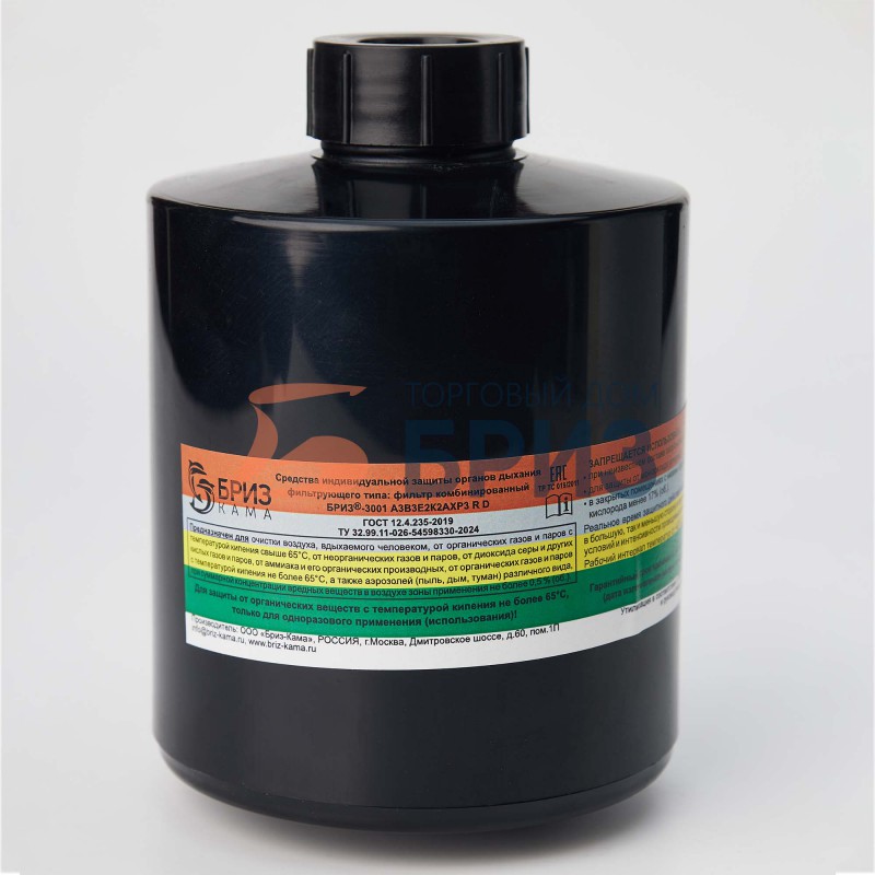 Фильтры комбинированные «БРИЗ®-3001» A3B3E2K2AXP3 R D имеют резьбовое соединение (Кр 40х4 ГОСТ 8762-75) и предназначены для применения в составе различных фильтрующих средств индивидуальной защиты органов дыхания производства ООО «Бриз-Кама» (с маской «БРИЗ®-4301М(ППМ)» категории 2, маской «БРИЗ®-4301(ППМ)» категории 3, маской «БРИЗ®-4306(ЭВР)» категории 2 исполнения II, шлем-маской ШМП класс 1 категории 2) для очистки вдыхаемого человеком воздуха от химически опасных и вредных токсичных веществ в том числе аварийно-химически опасных веществ ингаляционного действия (АХОВИД), а также различных аэрозолей, которые могут присутствовать в воздушной среде зоны применения данных фильтров в виде паров, газов и аэрозолей.