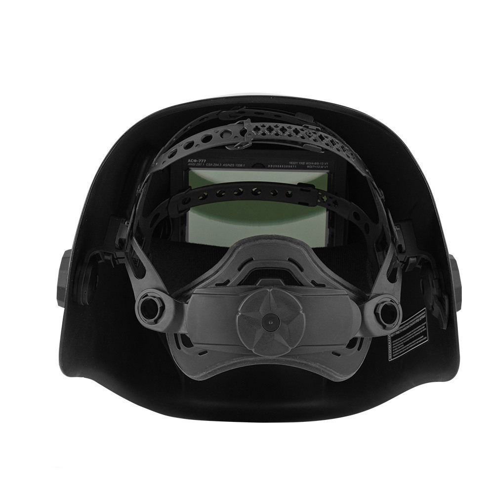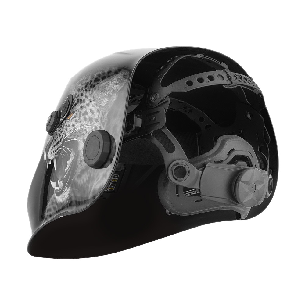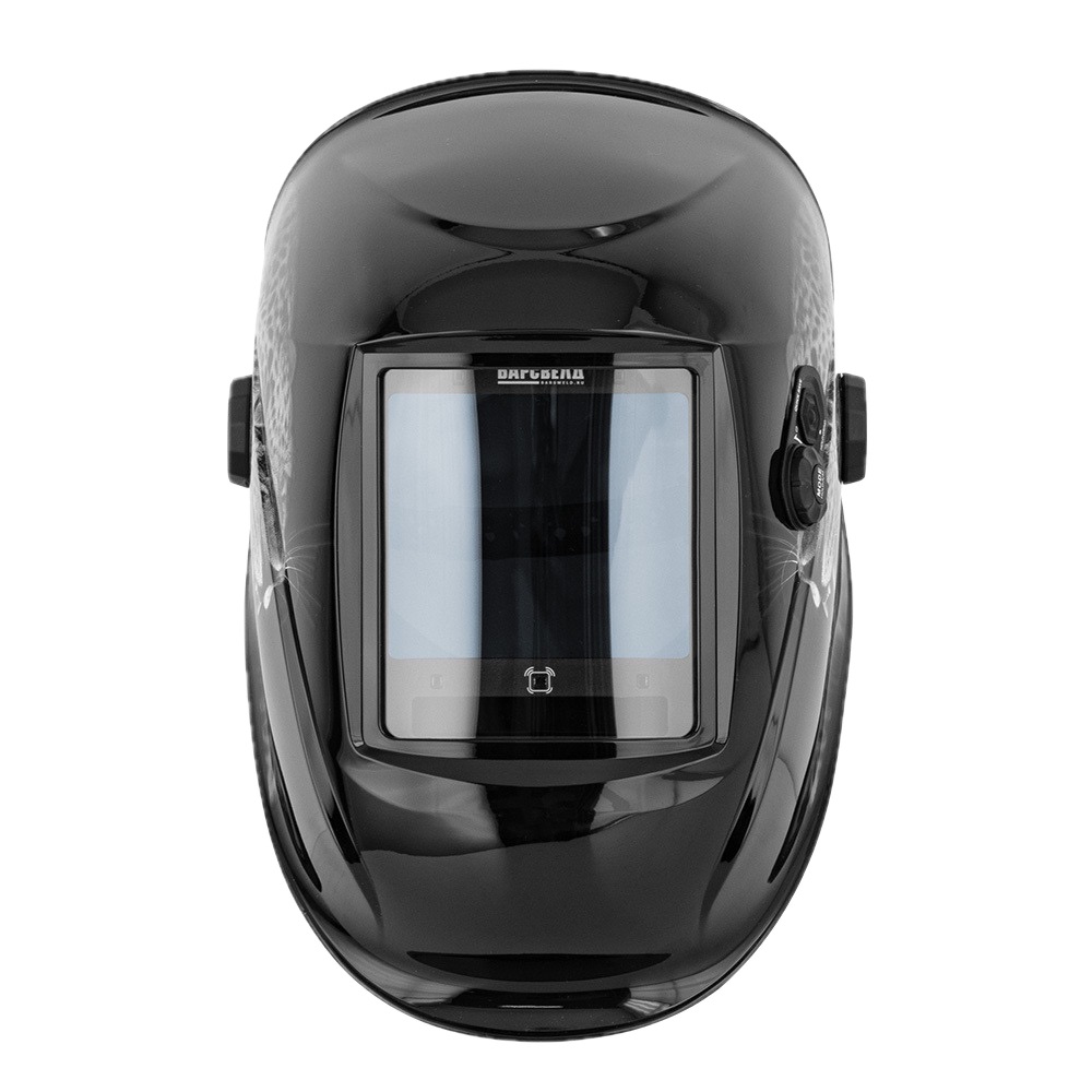 Смотровое окно 98×87 мм — одно из самых больших в классе. Оно обеспечивает широкий обзор рабочей зоны, контроль положения электрода и сварочной ванны без необходимости менять положение головы. Это особенно важно при сложных швах и точной TIG-сварке.