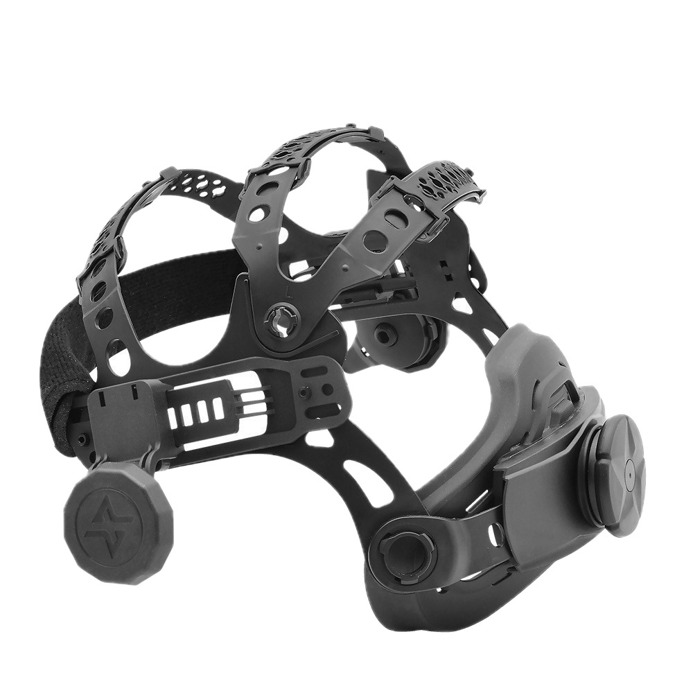 Анатомическое 4-ременное оголовье регулируется по обхвату, глубине, наклону и расстоянию до лица. Амортизирующий затылочник и мягкий налобник равномерно распределяют нагрузку, позволяя работать без давления и дискомфорта.
