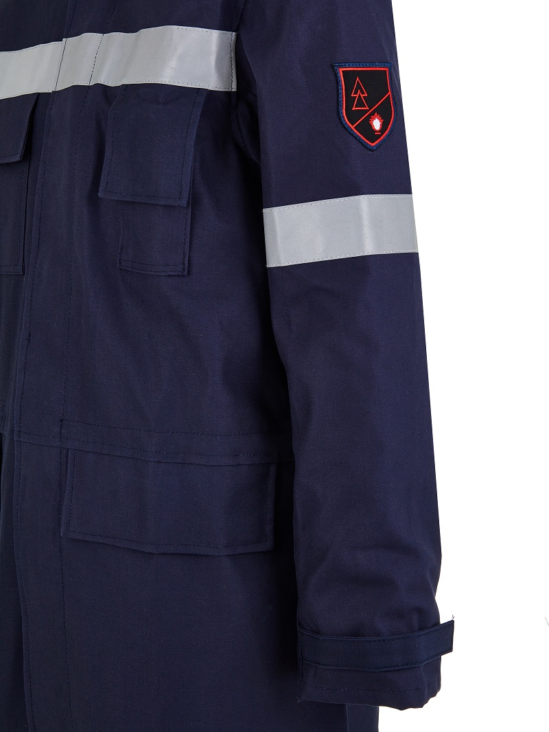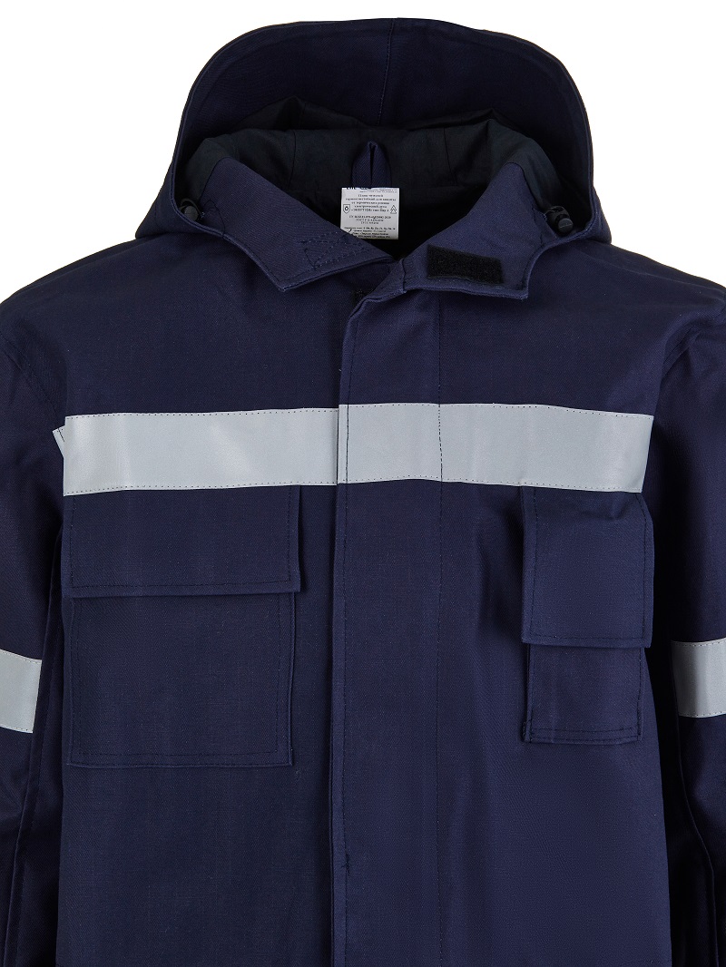 Модель выполнена из специализированной ткани «Энергия» с огнестойкой и водоотталкивающей обработкой. Материал сочетает прочность, термостойкость и антистатические свойства, обеспечивая безопасность при работе с электрическими рисками. Высокая водоупорность (10 000 Па) и паропроницаемость создают комфорт даже при длительном ношении.