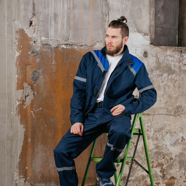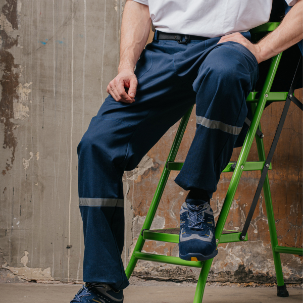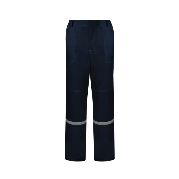 В нижней части брюк на передних половинках настрочены наколенники и горизонтальные светоотражающие полосы шириной 2,5 см.