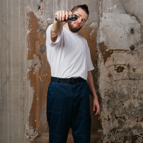 На задних половинках брюк настрочены накладные карманы, застежка гульфика на молнию.