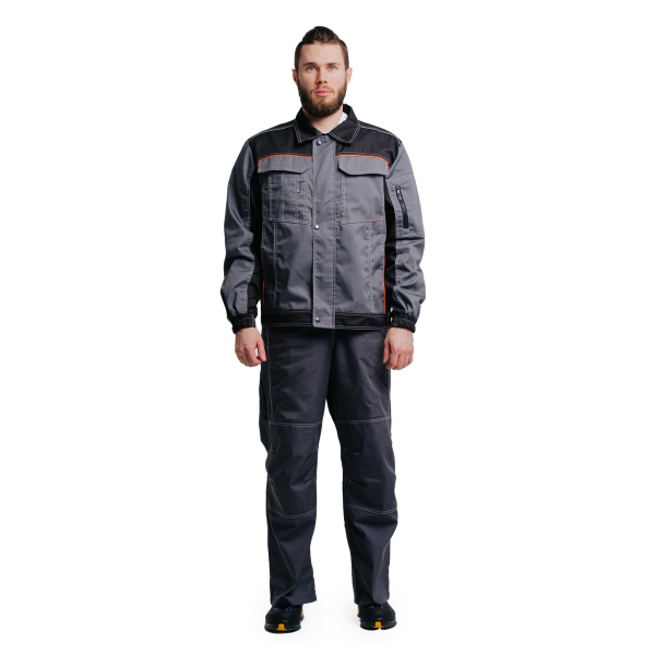 Комплект состоит из куртки и полукомбинезона, выполненных из прочной смесовой ткани с водоотталкивающей пропиткой, устойчивой к износу и общепроизводственным загрязнениям.