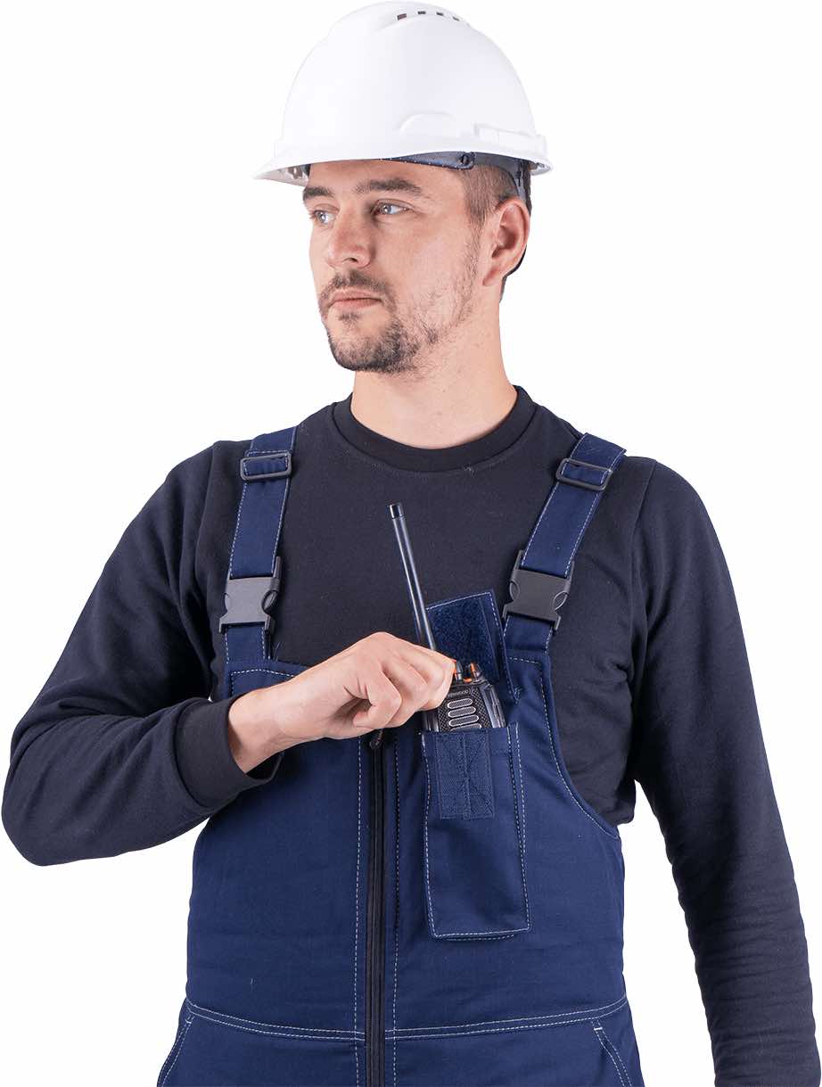 Комфорт при движении: анатомический крой, вытачки, регулируемые манжеты и бретели создают свободу движений даже при работе в толстом зимнем комплекте.