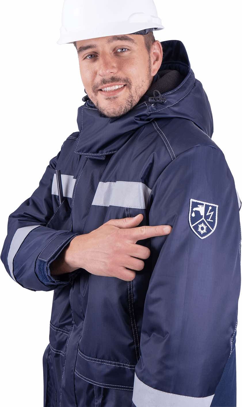 Для повышения видимости на одежду нанесены световозвращающие полосы шириной 50 мм, что особенно важно в зимний период и на объектах с пониженной освещённостью.