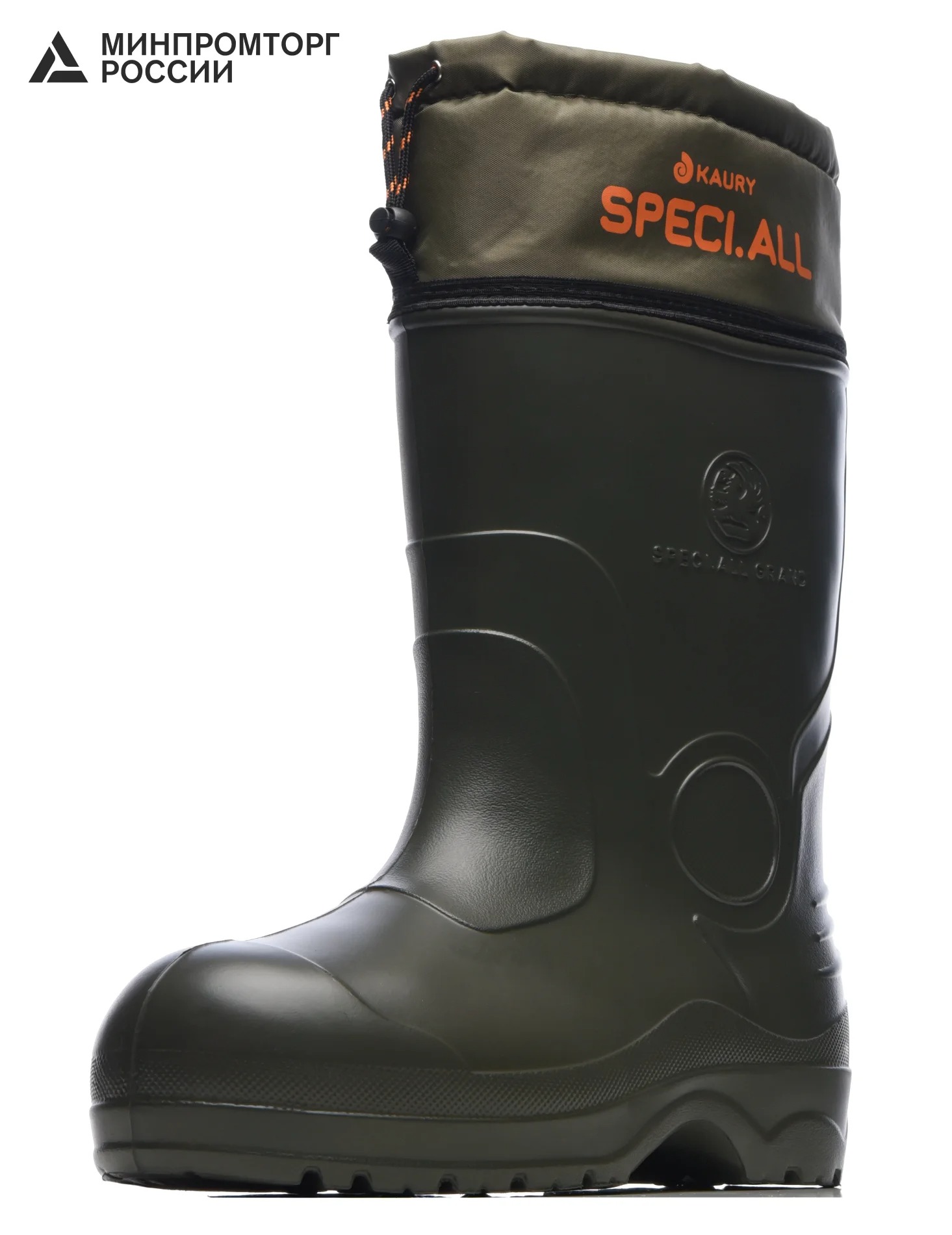 Цельнолитой корпус из ЭВА полностью герметичен, не пропускает влагу и устойчив к агрессивным средам. Материал обладает амортизирующими свойствами и сохраняет эластичность при низких температурах. Верх дополнен плотным водоотталкивающим манжетом Oxford с полиуретановой пропиткой, который фиксируется шнурком со стопором и предотвращает попадание снега и холодного воздуха внутрь.