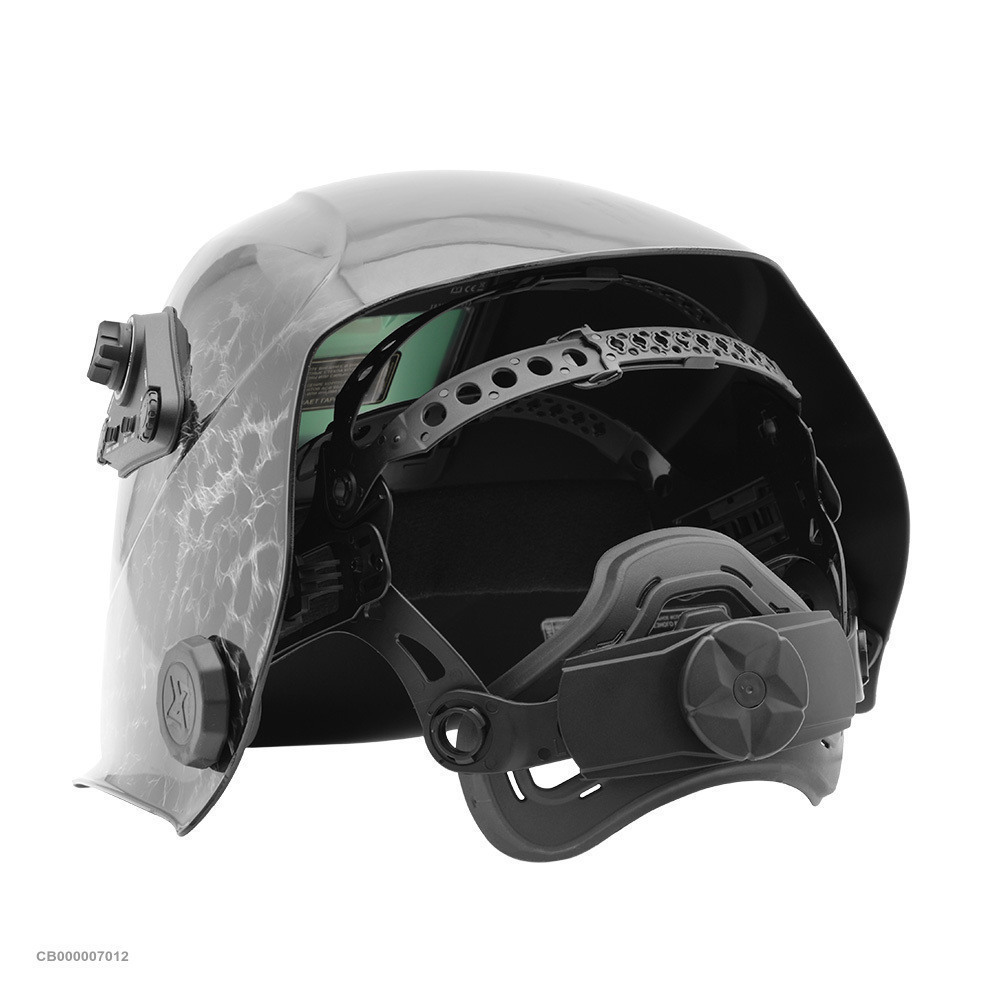 Увеличенное смотровое окно 100×60 мм обеспечивает широкий панорамный обзор, а два диапазона затемнения (5–8 и 9–13 DIN) позволяют использовать маску как для высокоточной TIG-сварки, так и для мощных MIG/MAG процессов. Все основные регулировки вынесены наружу, что позволяет настраивать параметры даже в перчатках и не снимая маску.