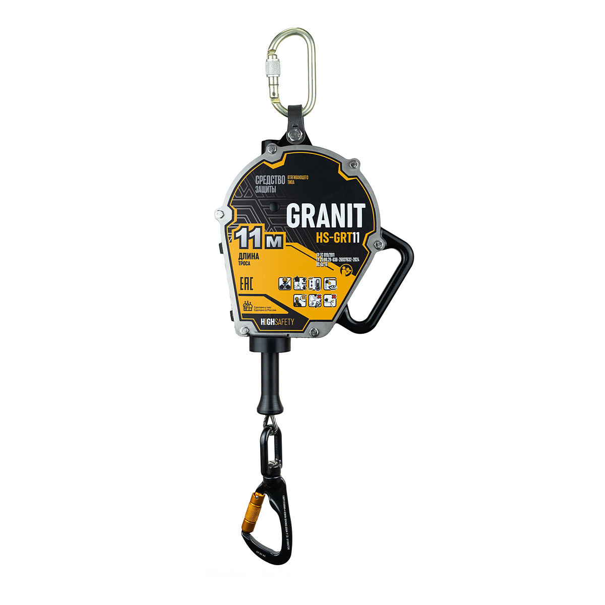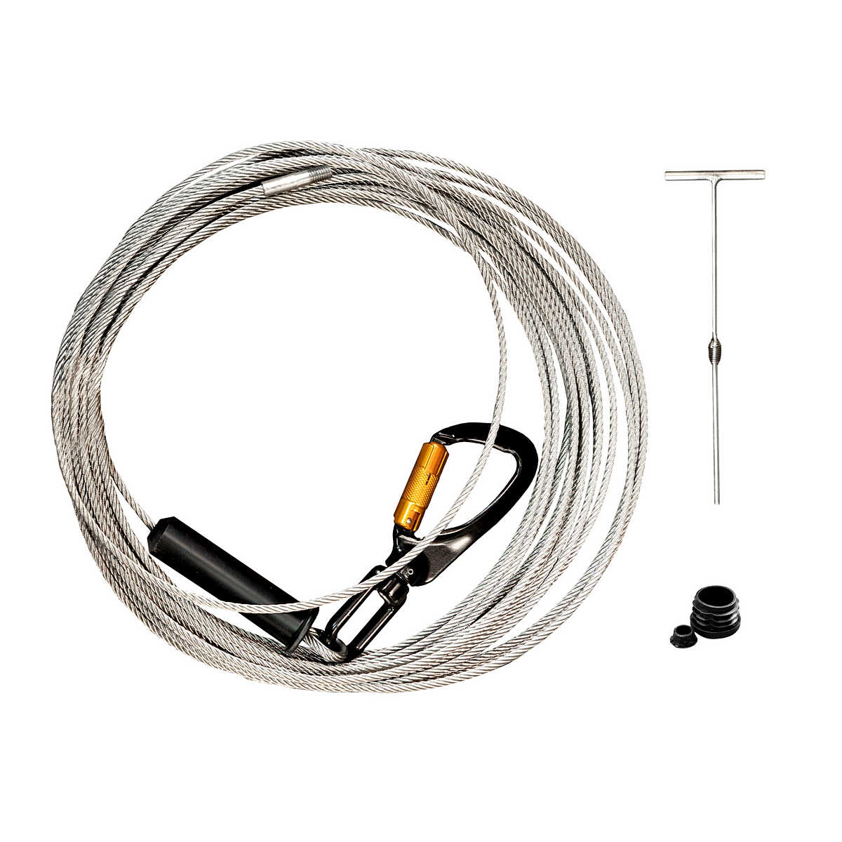На конце троса расположен карабин класса Т со встроенным индикатором срабатывания, который позволяет определить, было ли устройство задействовано в остановке падения. Карабин оснащен системой блокировки 2Lock (двухтактной автоматической муфтой): повернуть-открыть.