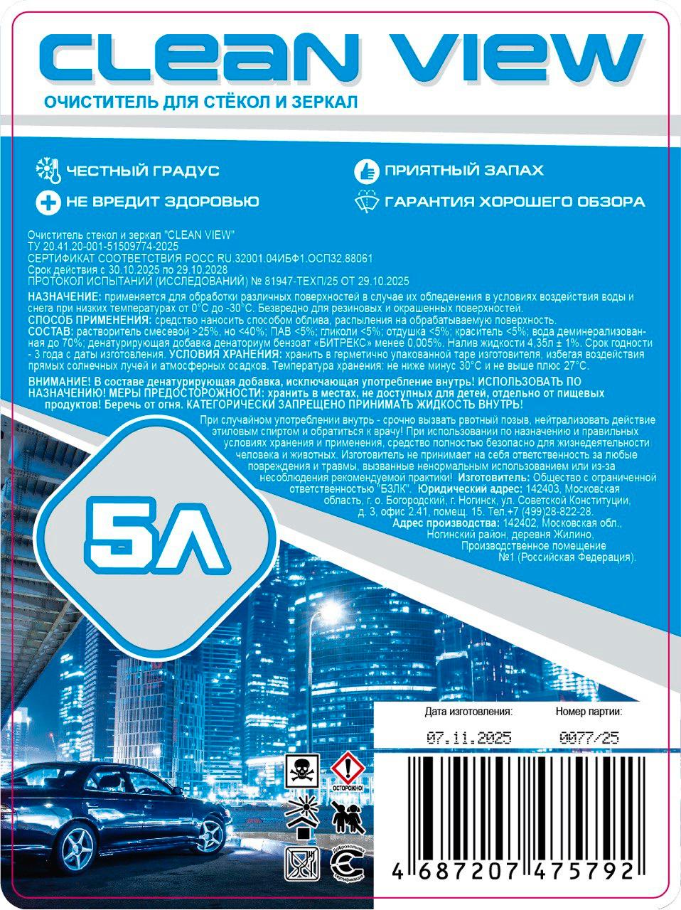 "CLEAN VIEW" — это эффективный зимний омыватель для лобовых стёкол, зеркал и фар, разработанный для стабильной работы в условиях сильного мороза. Средство быстро удаляет ледяную корку, зимнюю грязь, реагенты, дорожную пыль и масляные загрязнения, обеспечивая кристально чистый обзор даже в экстремальных условиях. Благодаря содержанию 35% спирта и тщательно выверенной формуле омыватель не замерзает и легко проходит через форсунки автомобилей с подогревом при температурах до –30 °C.