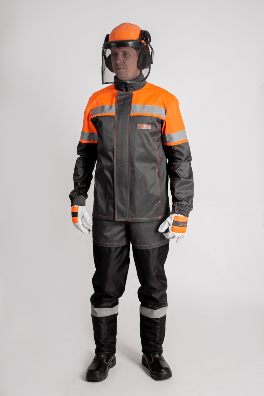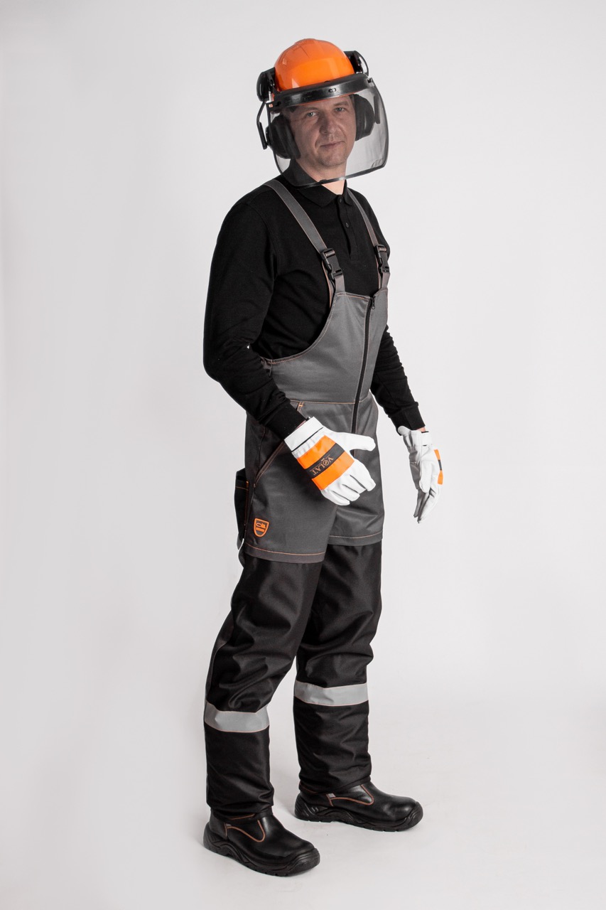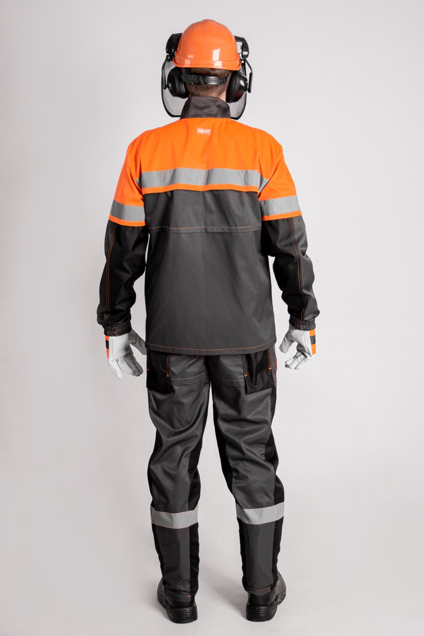 Костюм состоит из куртки и полукомбинезона. Предназначен для работы в лесу и деревообрабатывающей промышленности. Защищает от: