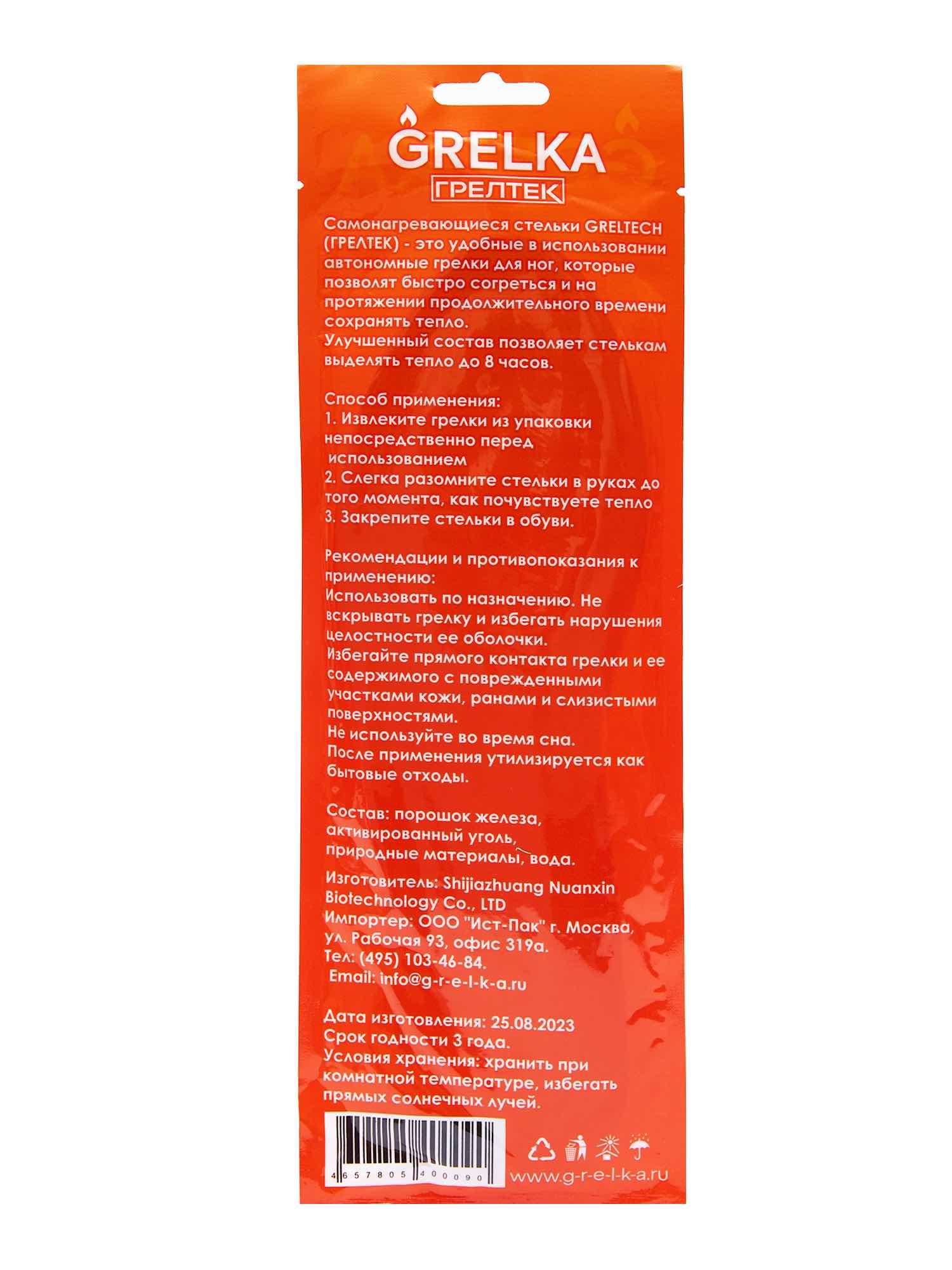 Откройте упаковку непосредственно перед применением. Достаньте стельку и слегка разомните для ускорения активации. Поместите в обувь греющей стороной вверх (к стопе). Носите с тёплым носком; избегайте прямого контакта стельки с голой кожей.