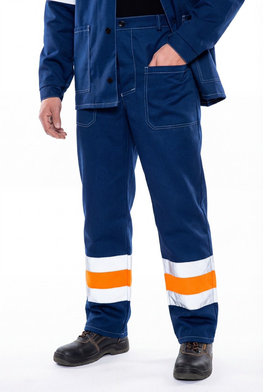 Изделие выполнено из прочной полиэфирнохлопковой ткани с водоотталкивающей отделкой, устойчивой к истиранию и загрязнениям. Флуоресцентные сигнальные элементы и световозвращающие полосы шириной 50 мм создают высокую заметность с большого расстояния. Конструкция куртки и брюк обеспечивает удобство движений и комфорт при длительной работе.