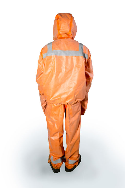 Костюм легкий защитный Л-1МК состоит из куртки с капюшоном, брюк с притачными осоюзками и трехпалых рукавиц. На рукавах куртки имеются манжеты, надежно облегающие запястье как в перчатках, так и без них. Светоотражающие элементы на куртке и брюках.