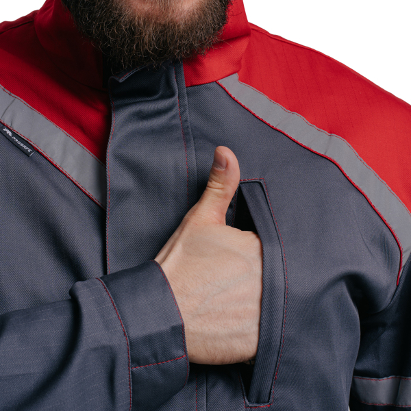 Рукав рубашечный в верхней части с горизонтальной светоотражающей полосой 2,5 см.