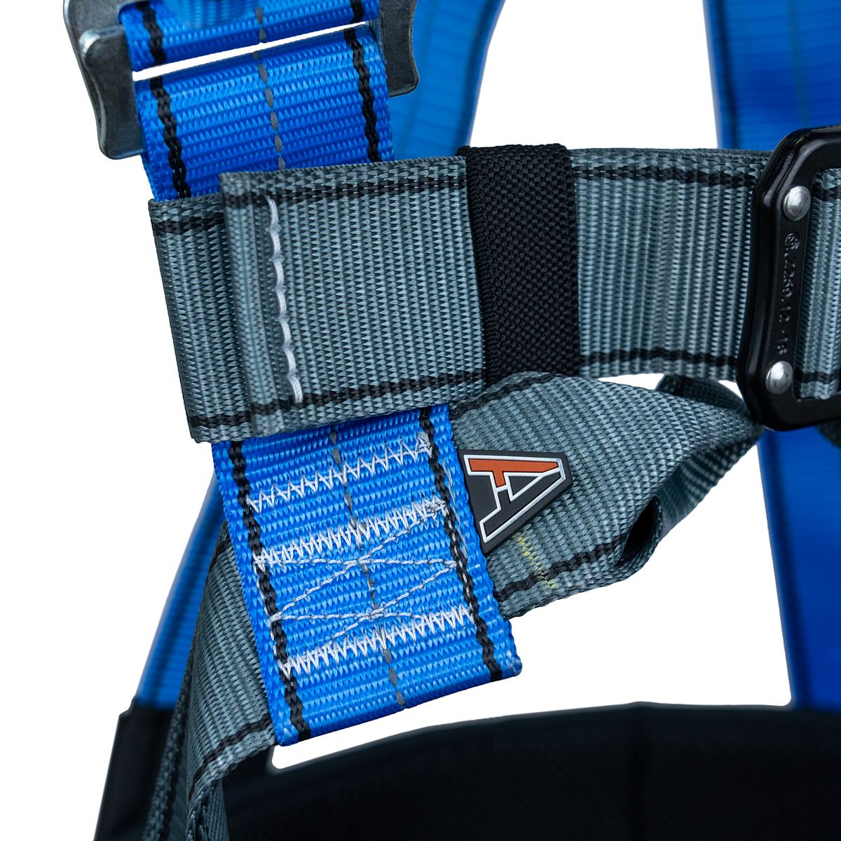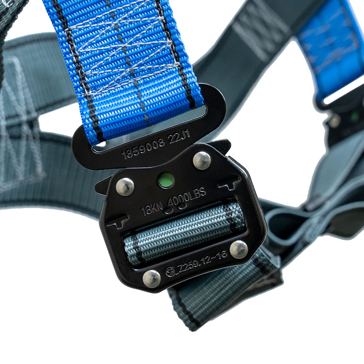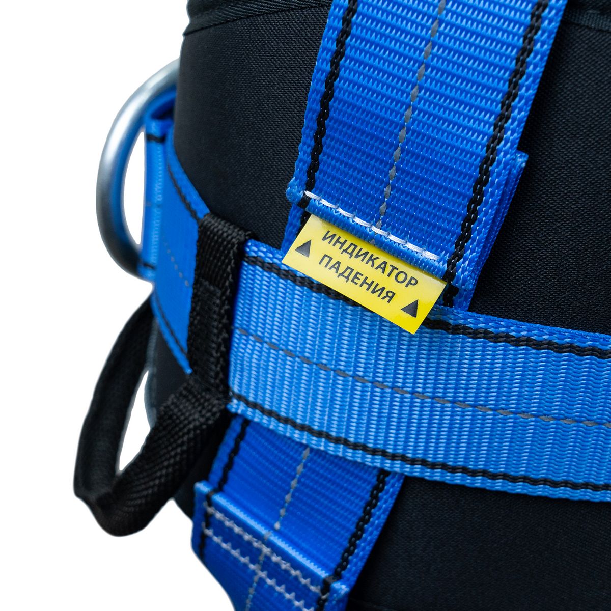 - разный цвет лямок для идентификации верха и низа привязи (синий с СВ нитью - верх привязи, серый - её низ);