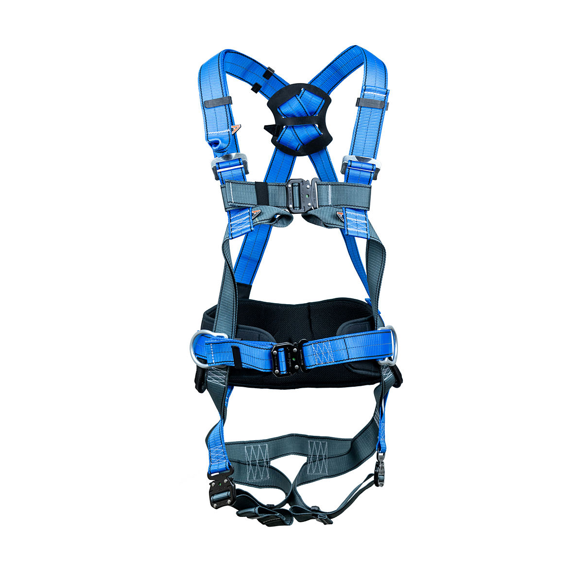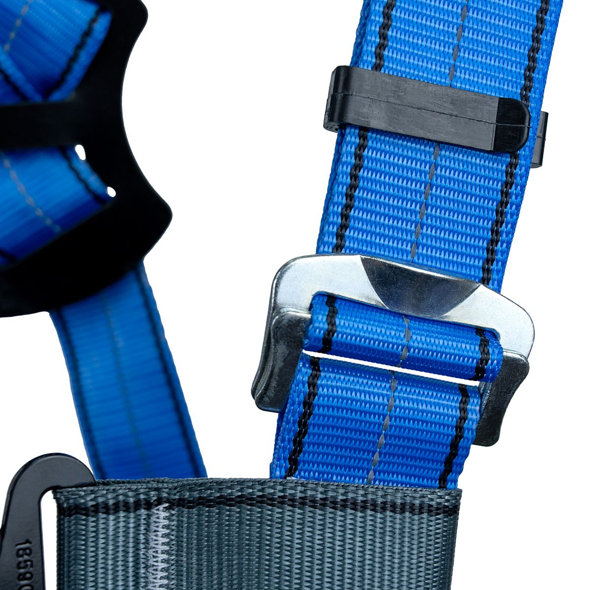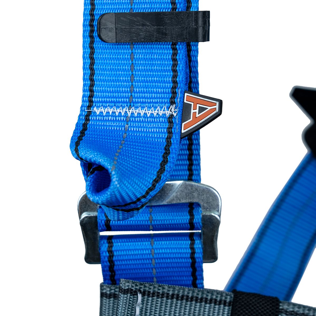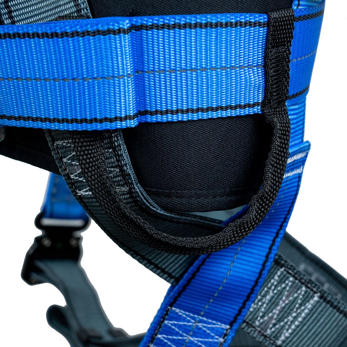 - разный цвет лямок для идентификации верха и низа привязи (синий с СВ нитью - верх привязи, серый - её низ);