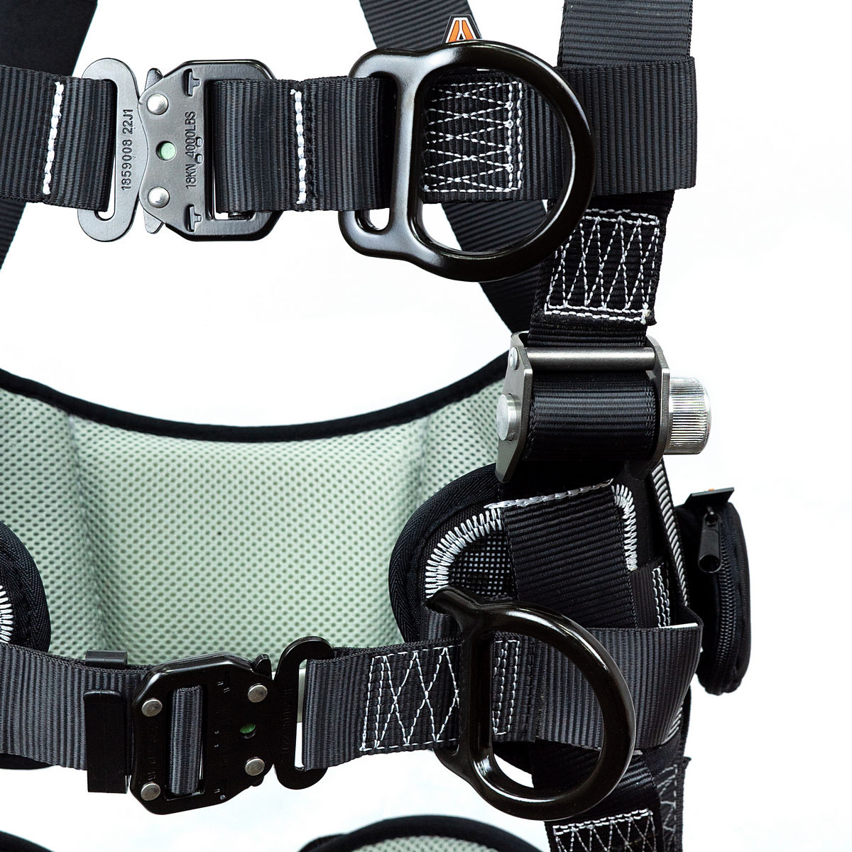 • две точки крепления страховочной подсистемы: D-образные кольца на груди и на спине;
