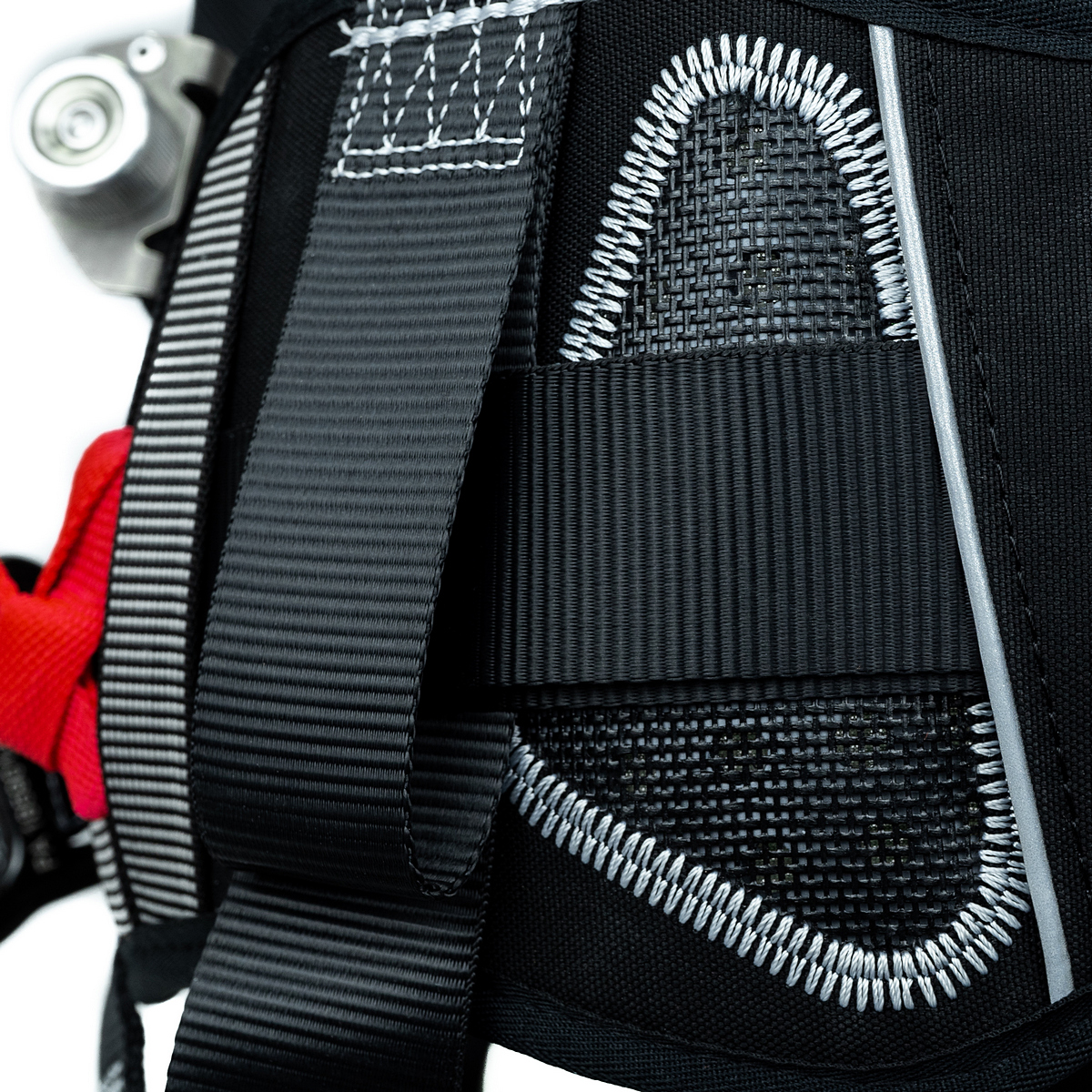 • две боковые точки крепления: выгнутые D-образные кольца на поясном ремне (система позиционирования);