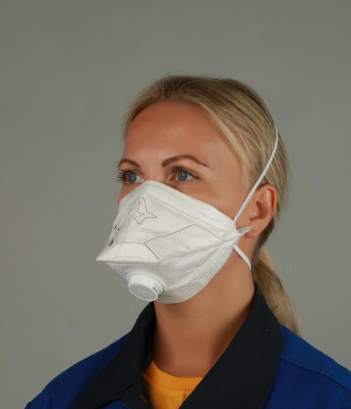 Складной респиратор из нетканого фильтрующего материала, имеющий эластичные ленты оголовья, носовой зажим и клапан выдоха, который обеспечивает понижение влажности и температуры в подмасочном пространстве, создавая комфортные условия для дыхания.