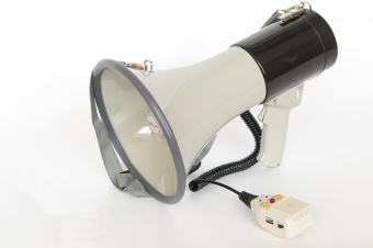 ЭМ-25сза(ч) ручной мегафон 25Вт (50Вт), сирена, запись/воспр 240 сек, Li аккумулятор, разъем 12В